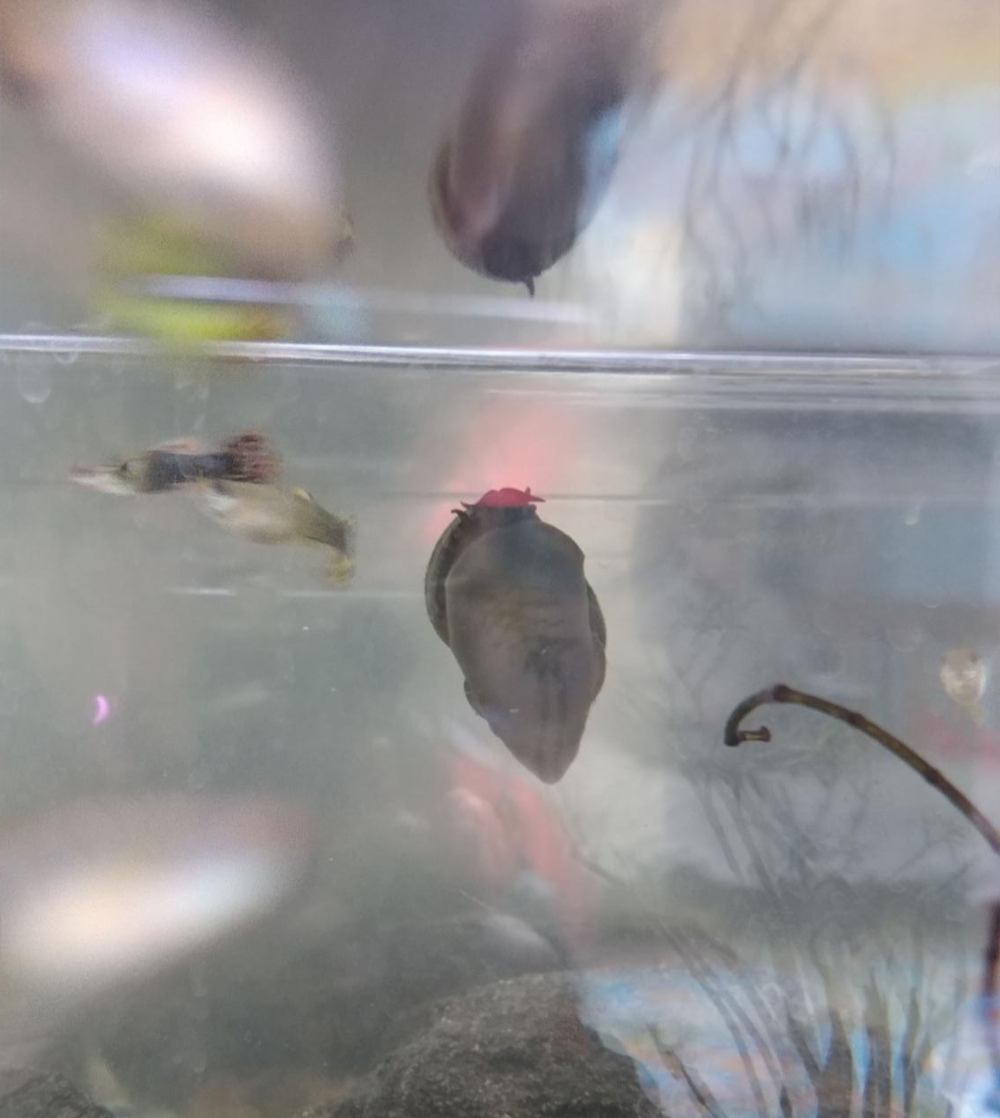 다른 어항으로 옮긴 우렁이 새끼
