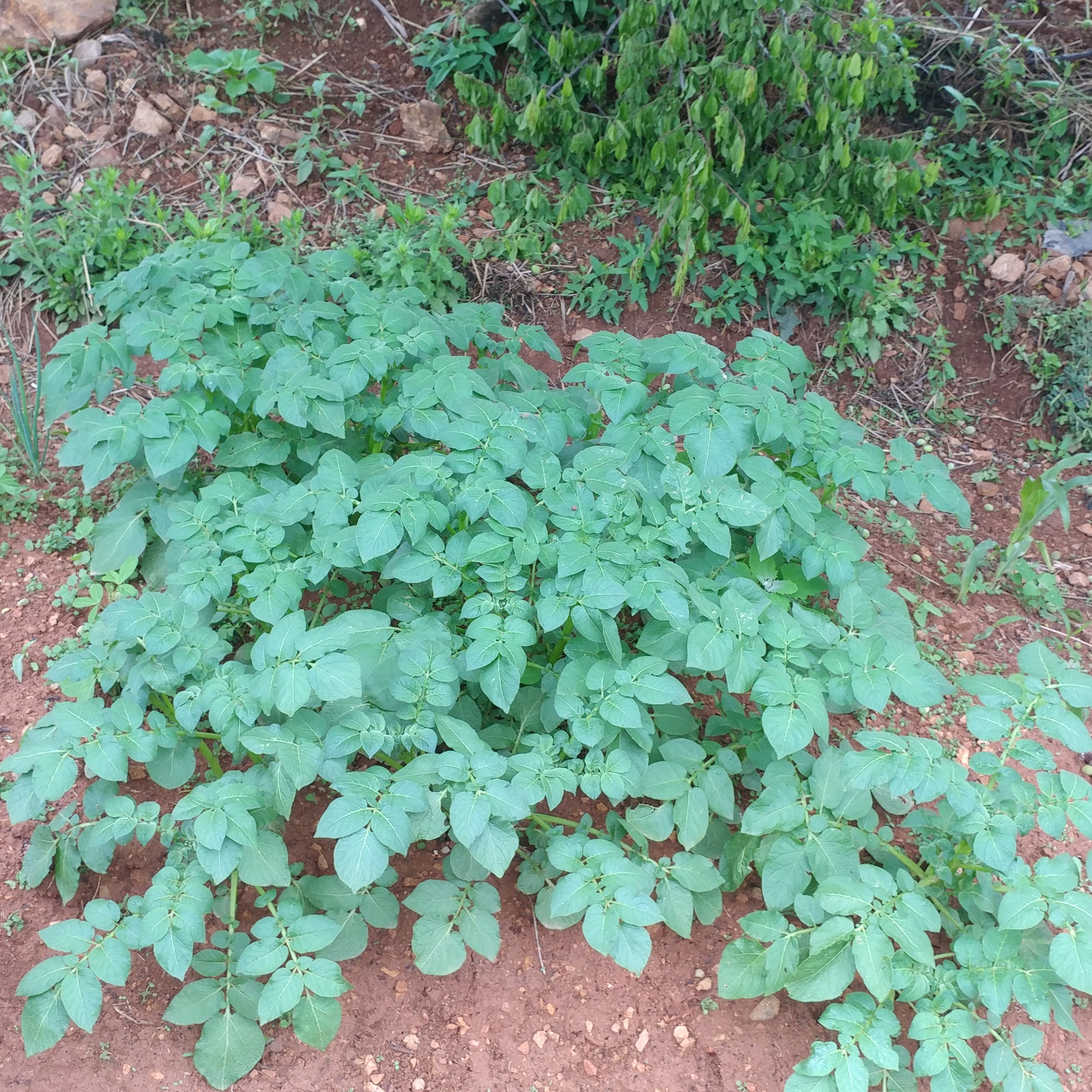 씨감자로 부터 나온 줄기 중 튼튼한 줄기 하나 또는 두개 남기고 뽑아주어야 감자 알이 커진다고 한다.