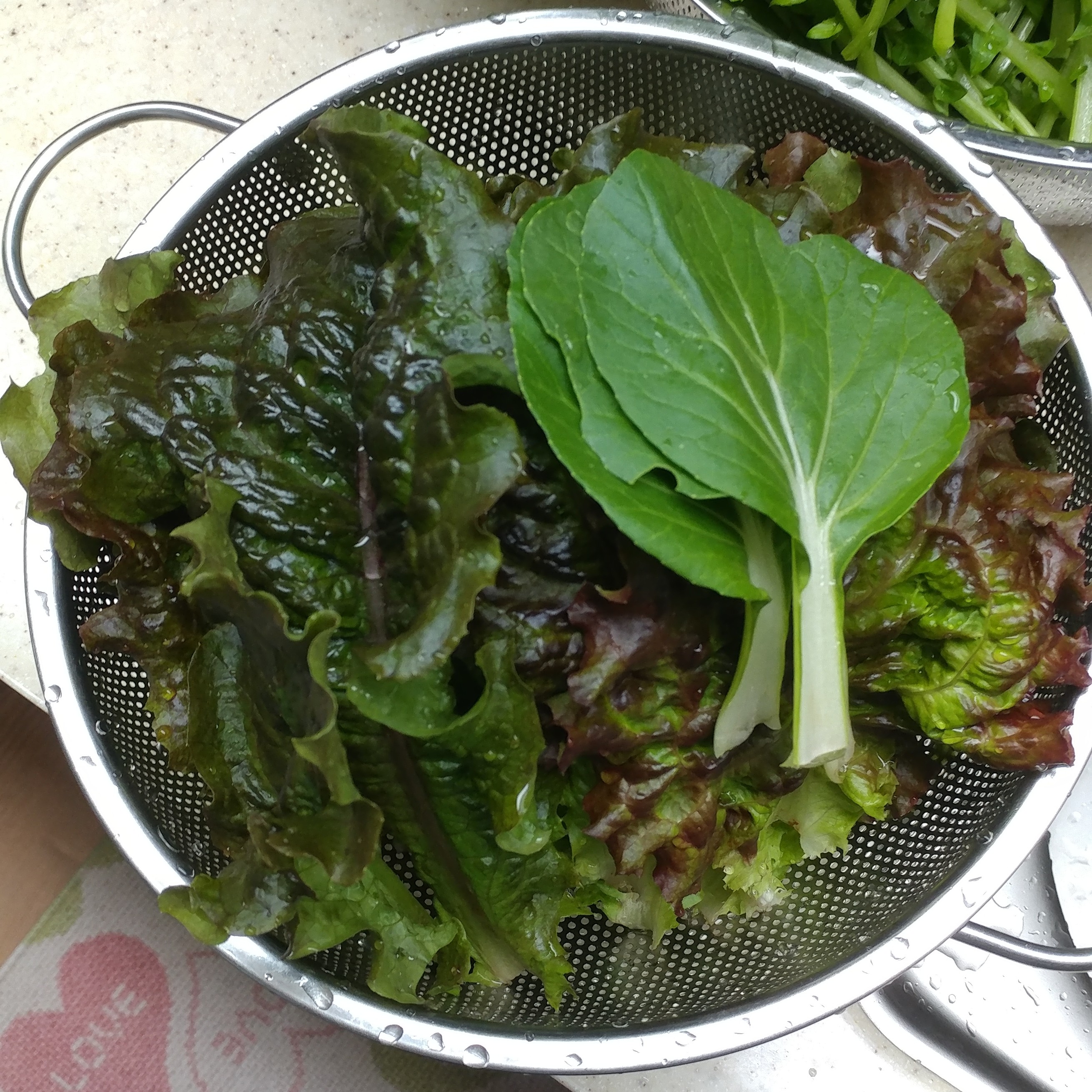 오늘 따온 상추와 열무를 정성껏 씻었다.